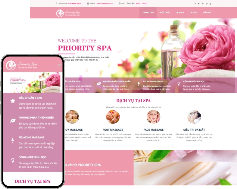 Các spa thiên về trải nghiệm không gian – mùi hương – dịch vụ – cần website để truyền tải hình ảnh thương hiệu và đặt lịch online.