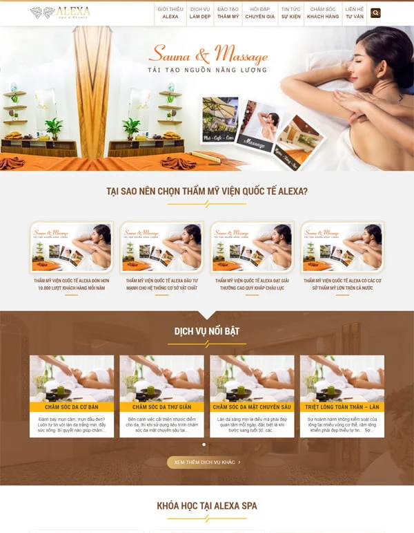 Bao gồm các dịch vụ như trị mụn, tái tạo da, căng bóng, trẻ hóa… Website giúp spa xây dựng uy tín thông qua case study, review và chứng minh chuyên môn.